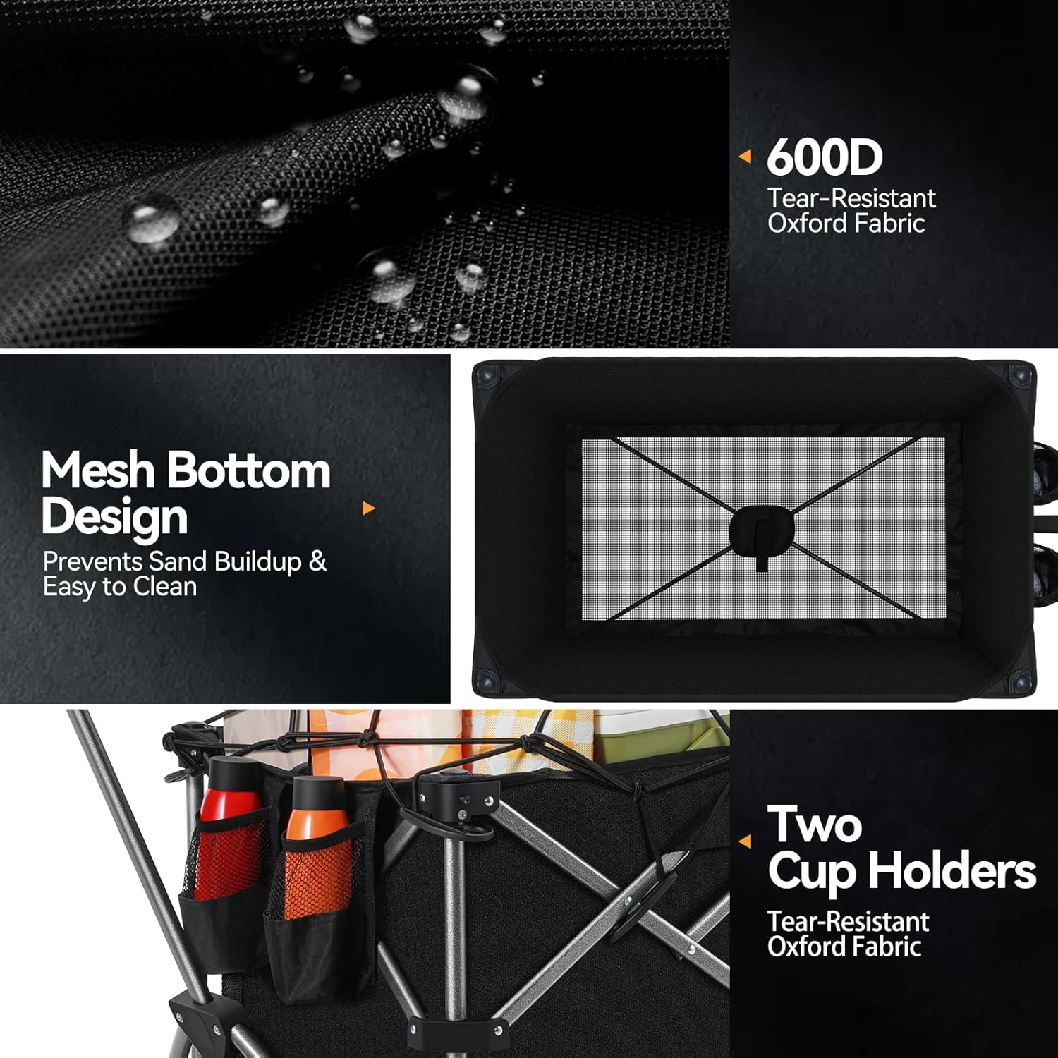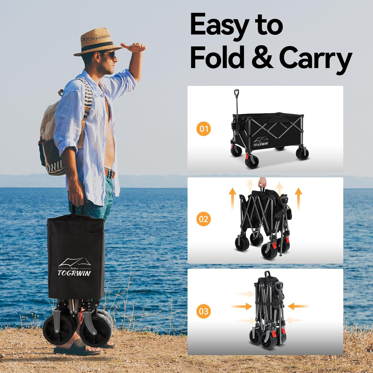1.. Қиындықсыз портативті:Кемпингтік арбаны бүктеу және тасымалдау. Бүктелген кезде, ол ультра ықшамға айналады (жуынып, жуан), бұл автомобиль таспалары, RV немесе шкафтар сияқты тығыз кеңістіктерде сақтауды жеңілдетеді. Кірістірілген жүк тасымалы ыңғайлы тасымалдауды қамтамасыз етеді, ал жеңіл, бірақ берік қаңылтыр (тек 18 фунт) оны сапарға, кемпингке немесе күнделікті тапсырыстарға өте жақсы етеді.